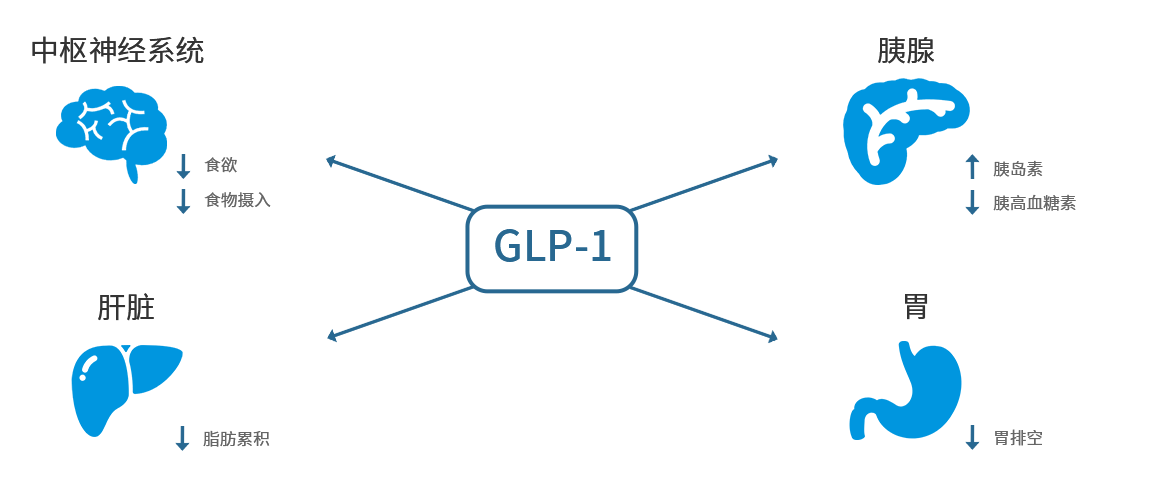 胰高血糖素樣肽-1(GLP-1)在餐后自然釋放,該肽作用于消化道、肝臟、胰腺和中樞神經系統以維持生理健康。